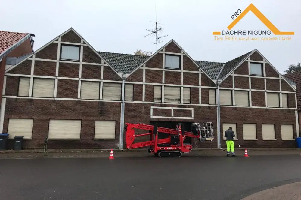 Wir sind kein Ein-Mann-Betrieb; wir verfügen über eigene Hubsteiger und professionelle Maschinen. Unser Fokus liegt ausschließlich auf Dachreinigung, Dachbeschichtung und Fassadenreinigung, um Ihnen die bestmöglichen Ergebnisse zu gewährleisten.